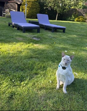 "My cat Felix slipped out during a party, and after hours of searching, TrackGo led us to him hiding in a bush nearby — that collar’s never coming off again!"